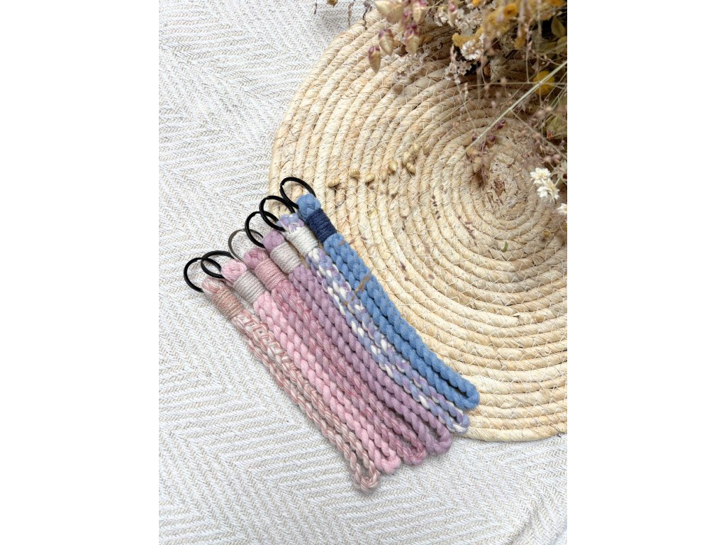 Poutko je ručně vázané, příjemné do ruky a díky kovovému kroužku se klíče snadno připnou a dobře drží. Skvěle se hodí i jako dárek „jen tak“ – praktický, hezký a s nádechem handmade.